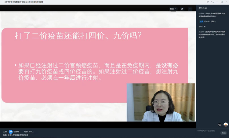 為關(guān)愛女性生理健康,增強(qiáng)我校女性自我呵護(hù)和自我關(guān)愛意識(shí),提升女大學(xué)生對(duì)青春期知識(shí)了解深度。3月30日下午,我校后勤保障處醫(yī)務(wù)室特邀商州區(qū)婦幼保健院副主任醫(yī)師劉燕妮為我校師生開展線上“擁抱青春,快樂生活”女性生理健康知識(shí)講座。共2000余人在線收看了講座。
