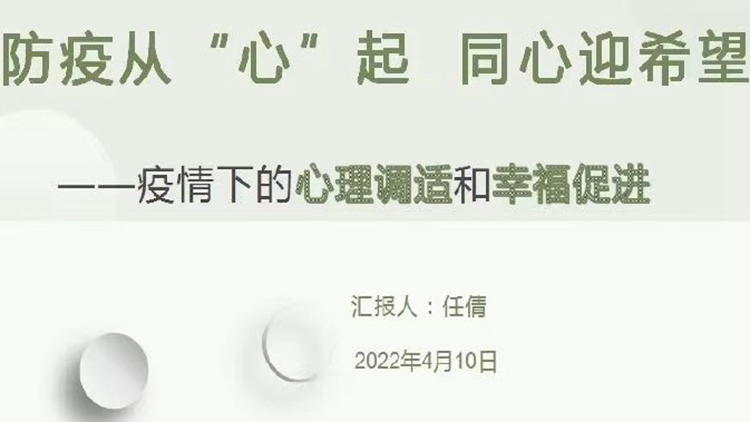 為舒緩疫情防控期間在校生焦慮情緒,助力做好心理調(diào)適和學(xué)習(xí)生活規(guī)劃,4月10日,經(jīng)管學(xué)院輔導(dǎo)員、國(guó)家三級(jí)心理咨詢(xún)師任倩通過(guò)釘釘平臺(tái)為學(xué)院師生舉辦了以“防疫從心起 同心迎希望 ——疫情下的心理調(diào)適和幸福促進(jìn)”為主題的線(xiàn)上主題講座。