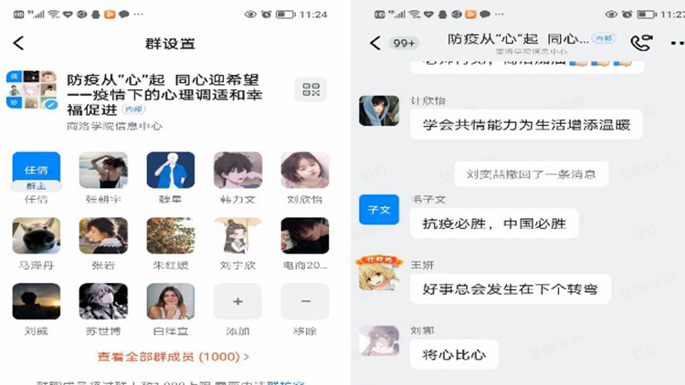 任倩老師分別從“感受樂(lè)觀(guān)的力量”、“ABCDE樂(lè)觀(guān)思維模式”、“心理調(diào)適建議”三個(gè)方面結(jié)合學(xué)生學(xué)習(xí)生活現(xiàn)狀,為1000余名在線(xiàn)師生進(jìn)行了生動(dòng)的心理健康知識(shí)講解。就疫情突發(fā),校園臨時(shí)封閉管理期內(nèi)可能產(chǎn)生的焦慮多疑、惶恐不安、悲傷抑郁等心理問(wèn)題提出了調(diào)試方法。通過(guò)線(xiàn)上互動(dòng)讓大家了解“共情”,喚醒“共情”,傳遞“共情”,以積極健康的心態(tài)面對(duì)生活,共克時(shí)艱!