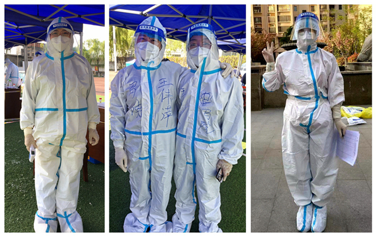 ——廣大教師響應(yīng)號(hào)召,積極參與志愿服務(wù)。4月8日首場(chǎng)全員核酸檢測(cè)拉開序幕,工作人員緊缺,馬克思主義學(xué)院教師安梅、王偉萍、王貝貝主動(dòng)請(qǐng)纓,穿上防護(hù)服,變身“大白”,在炎炎烈日下協(xié)助醫(yī)護(hù)人員完成檢測(cè)任務(wù)。4月11日,組織部發(fā)出《致全校各級(jí)黨組織和廣大共產(chǎn)黨員的倡議書》后,馬克思主義學(xué)院教師黨員積極響應(yīng),踴躍報(bào)名。劉健、葉肖、鞏麗麗、王貝貝、王偉萍等同志參與了校內(nèi)志愿服務(wù),高婷婷、宋秀方等同志積極擔(dān)任了所在小區(qū)志愿者。他們起早貪黑,頂著烈日、冒著風(fēng)雨為疫情防控做出積極貢獻(xiàn)。還有肖歲利等非黨員教師也積極向組織表達(dá)了參加志愿服務(wù)的強(qiáng)烈愿望。
