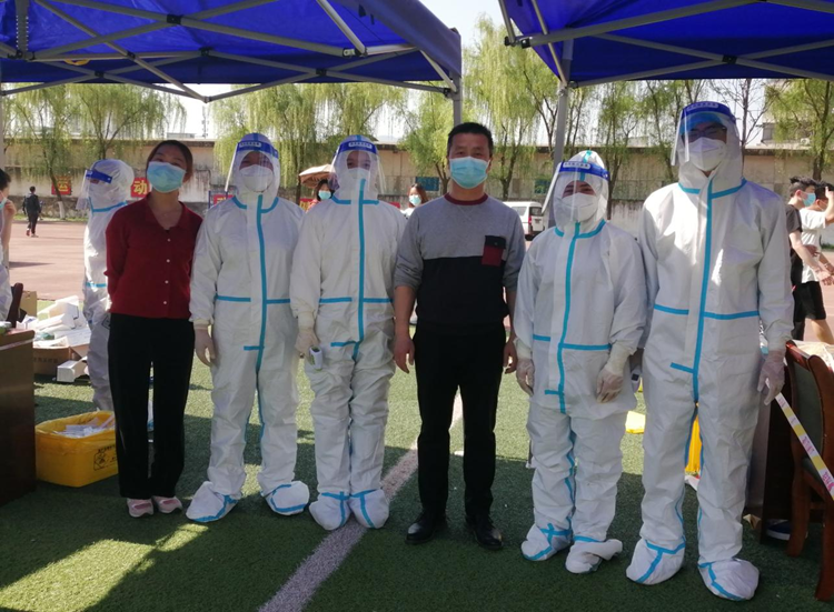做好志愿服務(wù),發(fā)揮先鋒作用。在學(xué)校大操場(chǎng),鄧淑紅、楊鵬飛、李娜娜等教師身穿防護(hù)服,克服酷暑,連續(xù)參與全校學(xué)生核酸檢測(cè)任務(wù);在學(xué)校小操場(chǎng),黃荊晶、周方舟、丁燕琳等教師引導(dǎo)廣大教職工有序排隊(duì)、信息錄入、掃碼測(cè)溫;南院家屬區(qū),郭磊磊老師指導(dǎo)幫助退休教職工和年長(zhǎng)家屬掃碼、填報(bào)相關(guān)個(gè)人信息;青年教師公寓檢測(cè)區(qū)采樣點(diǎn),王程老師協(xié)助采樣工作人員開(kāi)展測(cè)溫、清理工作臺(tái)、現(xiàn)場(chǎng)消殺。