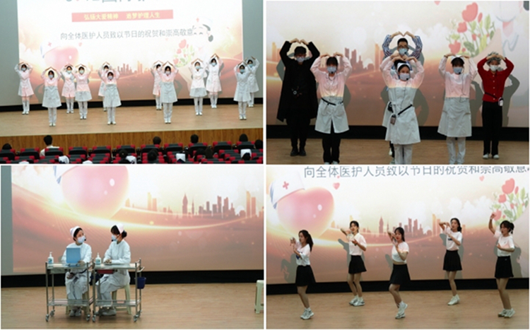 護(hù)理系師生歷經(jīng)3次彩排,一起自編、自導(dǎo)、自演9項(xiàng)節(jié)目,以此迎接國(guó)際護(hù)士節(jié)的到來(lái),致敬我們的“白衣天使”:“護(hù)士禮儀展示”對(duì)護(hù)士職業(yè)禮儀進(jìn)行了完美的詮釋?zhuān)磺榫皠 鞍滓沦潯辟N近生活、富有創(chuàng)意,體現(xiàn)了護(hù)士們甘于奉獻(xiàn)、大愛(ài)無(wú)疆的精神追求;舞蹈“你最最最重要”展示了學(xué)生們撲面而來(lái)的青春活力;“呼吸操”帶來(lái)增強(qiáng)肺功能的鍛煉方法;手語(yǔ)操“國(guó)家”用雙手傳遞出溫暖;大合唱“追夢(mèng)赤子心”用響亮的聲音告訴世界沒(méi)有什么能夠阻擋一顆赤子之心;舞蹈“抗疫天使”,讓我們懂得生命可貴以及護(hù)士的艱辛和偉大;洗手舞“天天向上”突出了正確洗手是自身防疫的關(guān)鍵;最后,朗誦“白衣天使”將整個(gè)現(xiàn)場(chǎng)氣氛推向了高潮,為大家提供了一場(chǎng)視覺(jué)盛宴。