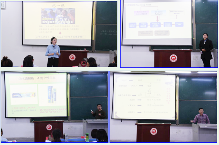 八位參賽教師按照抽簽順序逐一進行現(xiàn)場教學展示。經(jīng)過激烈角逐,馮麗君、劉玉婷獲“人文學院教學標兵”稱號,王欣欣獲“人文學院教學能手”稱號,鐘思遠獲“人文學院教學骨干”稱號,其余四位教師榮獲教學優(yōu)秀獎。