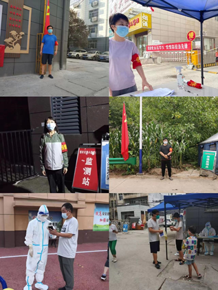 我院彭永鑫老師、楊全老師住在南院家屬區(qū),主動承擔南院的核酸檢測志愿服務工作,楊全老師還動員自己大學暑假在家的兒子一起參加核酸檢測志愿服務。劉曉民、李永華、張潔老師分別在自己的小區(qū)承擔起巡邏、信息登記、核酸檢測、值班值守等工作。輔導員韓威,身在老家洛南,也積極投身村里的疫情防控工作,協(xié)助所在村委會工作人員進行入戶核酸采樣,并主動承擔卡點值班任務。