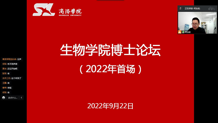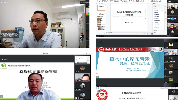 9月22日,生物醫(yī)藥與食品工程學(xué)院博士論壇2022年首場學(xué)術(shù)交流活動在云端順利舉行。本次論壇特邀我院2位客座教授——西北大學(xué)博士生導(dǎo)師趙桂仿,陜西省農(nóng)村科技開發(fā)中心、陜西省獼猴桃工程技術(shù)研究中心主任雷玉山研究員蒞臨云端全程指導(dǎo)。生物學(xué)院院長王學(xué)軍出席論壇活動。生物學(xué)院全體教師及部分畢業(yè)班學(xué)生在線上參加論壇。論壇由副院長何念武主持。
