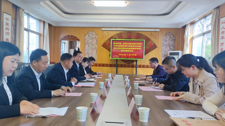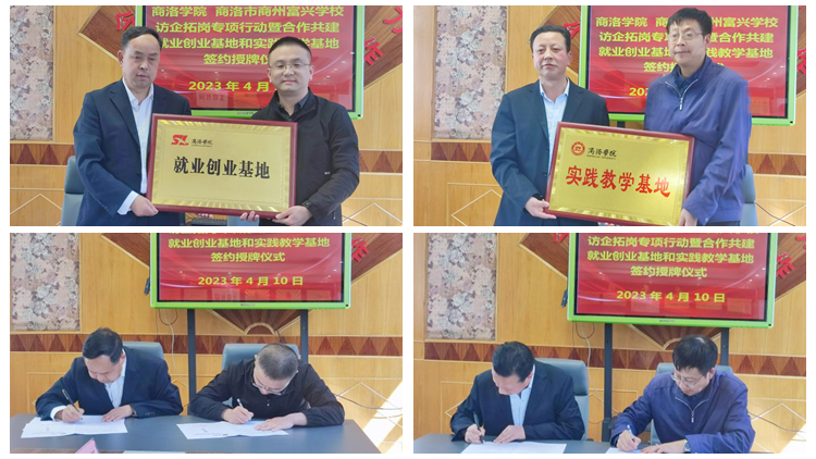 廉明與張淑峰代表雙方簽署大學(xué)生就業(yè)創(chuàng)業(yè)基地建設(shè)合作協(xié)議,王念良與商州富興學(xué)校副校長(zhǎng)劉鐵成代表雙方簽署商洛學(xué)院校外實(shí)踐教學(xué)基地合作協(xié)議。廉明、王念良分別為就業(yè)創(chuàng)業(yè)基地、實(shí)踐教學(xué)基地授牌。