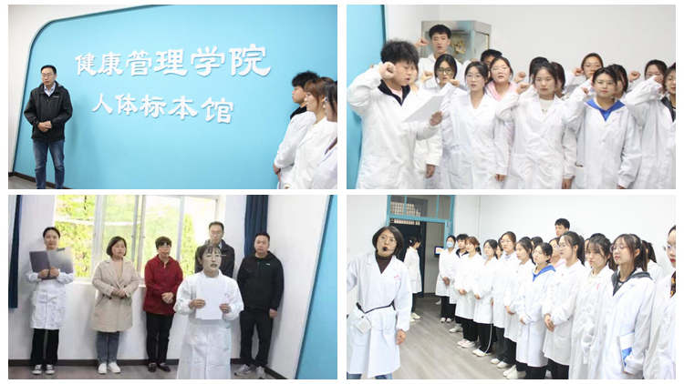 護(hù)理系系主任贠航從多方面對(duì)學(xué)院人體標(biāo)本館作了介紹,實(shí)驗(yàn)室中心主任陳穎宣讀了《人體標(biāo)本館進(jìn)館須知》,護(hù)理系教師王濤帶領(lǐng)與會(huì)師生詳細(xì)參觀了人體標(biāo)本館,學(xué)生代表胡虔熙帶領(lǐng)全體學(xué)生重溫了醫(yī)學(xué)生誓言。