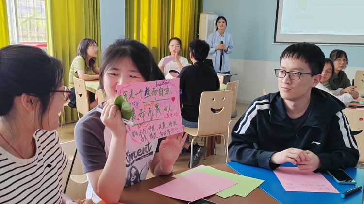 “向陽花”大學(xué)生危機預(yù)控工作室項目負(fù)責(zé)人、生物學(xué)院輔導(dǎo)員張俊華帶領(lǐng)的“贊出高情商”團輔活動,通過“動物大集合”“相見歡,滾雪球”“贊美三段論”“正向八卦”“贊美卡片分享和制作”等環(huán)節(jié),讓同學(xué)們感受到贊美的意義和力量、善于發(fā)現(xiàn)個人平時忽略掉的閃光點,在增強學(xué)生自信心的同時學(xué)會高情商地贊美他人,從而增進人際交往能力。