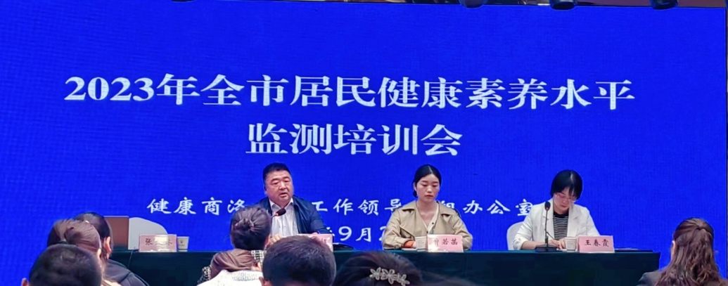 2023年9月27日,商洛市健康商洛建設(shè)工作領(lǐng)導(dǎo)小組辦公室在商州區(qū)商洛國(guó)際會(huì)議中心舉辦“2023年全市居民健康素養(yǎng)水平監(jiān)測(cè)培訓(xùn)會(huì)”。健康商洛建設(shè)工作領(lǐng)導(dǎo)小組辦公室常務(wù)副主任何鵬超、商洛市衛(wèi)生健康委員會(huì)健康促進(jìn)科二級(jí)主任科員王春霞以及商洛市各縣(區(qū))居民健康素養(yǎng)水平監(jiān)測(cè)工作負(fù)責(zé)人、樣本鎮(zhèn)(辦)數(shù)據(jù)監(jiān)測(cè)員參加會(huì)議。我校健康管理學(xué)院秦嶺健康養(yǎng)生產(chǎn)教融合根植地方服務(wù)團(tuán)隊(duì)骨干教師曹若菡受邀為參會(huì)人員開展居民健康素養(yǎng)水平監(jiān)測(cè)技能培訓(xùn)。