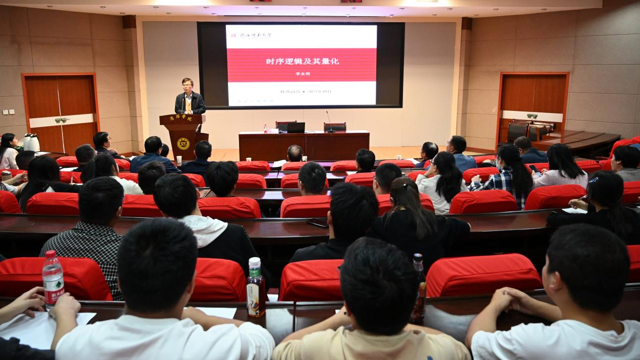 10月13日,數(shù)計(jì)學(xué)院邀請(qǐng)我校客座教授、陜西師范大學(xué)博士生導(dǎo)師李永明教授來校作題為《時(shí)序邏輯及其量化》的學(xué)術(shù)報(bào)告。學(xué)院全體教師及80余名學(xué)生代表參加了報(bào)告會(huì)。報(bào)告會(huì)由數(shù)計(jì)學(xué)院副院長(zhǎng)李會(huì)榮主持。