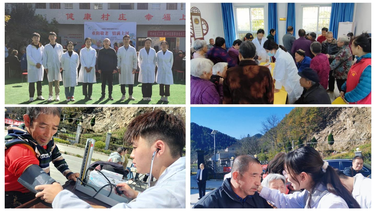 學(xué)院黨委書記王攀、副院長(zhǎng)張曉文分別代表學(xué)院師生向兩個(gè)村莊的老人們致以親切的節(jié)日問候和良好祝愿。隨后,由志愿者們進(jìn)行義診活動(dòng),提供血壓血糖測(cè)量、康復(fù)理療、中醫(yī)耳穴壓豆、骨密度檢測(cè)等各項(xiàng)服務(wù)項(xiàng)目,同時(shí)普及健康知識(shí),為老年人提供心理咨詢服務(wù),提升老年人健康素養(yǎng),推動(dòng)改善老年人心理健康狀況。據(jù)統(tǒng)計(jì),活動(dòng)受益群眾達(dá)200余人,師生專業(yè)細(xì)致的服務(wù),周到通俗的講解,受到了村民的廣泛好評(píng)。