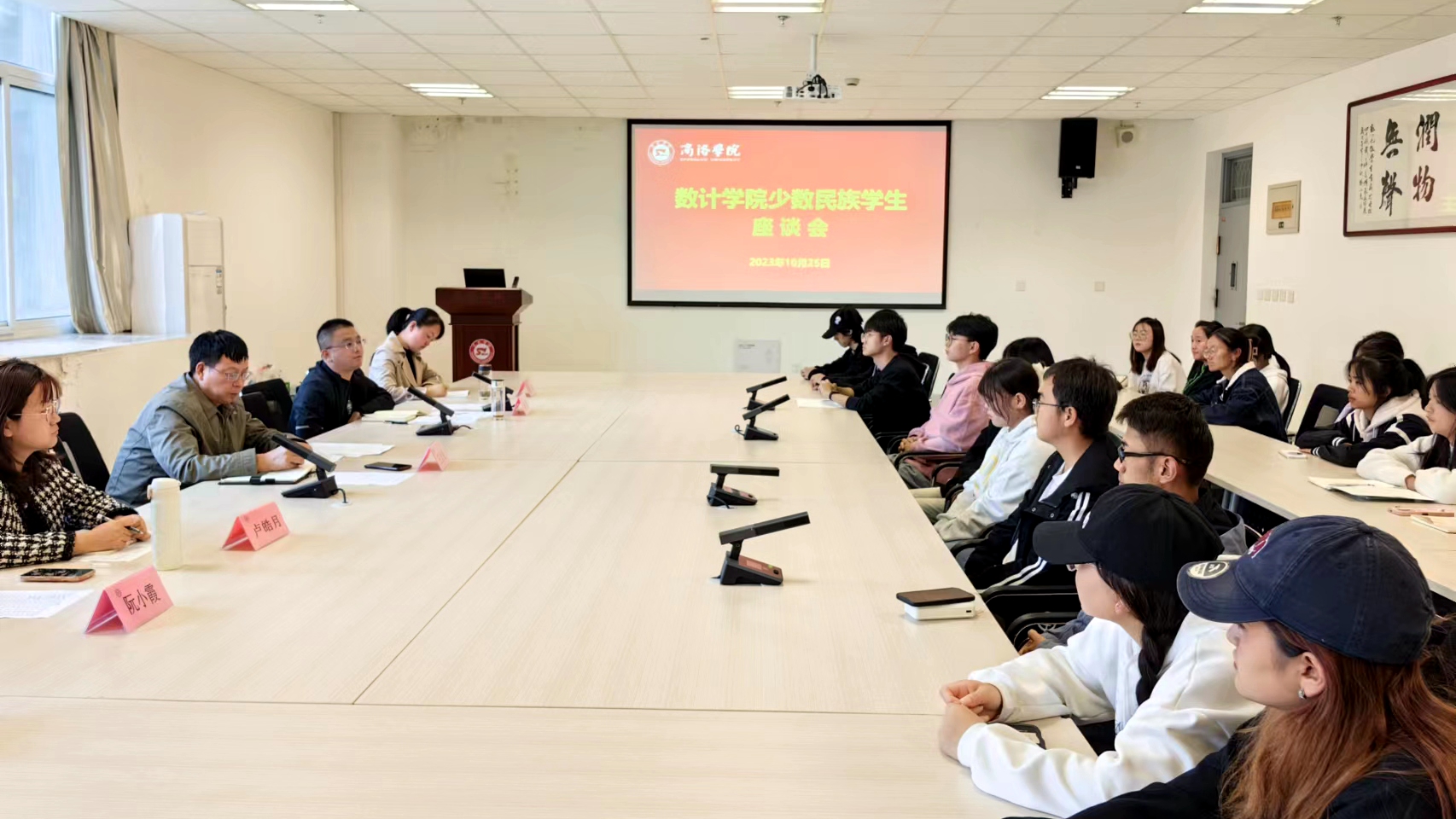 為鑄牢中華民族共同體意識(shí),深入了解少數(shù)民族學(xué)生在學(xué)習(xí)、生活、飲食等方面存在的問(wèn)題,10月25日,數(shù)計(jì)學(xué)院召開(kāi)少數(shù)民族學(xué)生代表座談會(huì)。數(shù)計(jì)學(xué)院黨委書(shū)記廉明,副院長(zhǎng)王念良出席座談會(huì)。學(xué)院相關(guān)工作人員,各學(xué)生黨支部書(shū)記及2022級(jí)、2023級(jí)少數(shù)民族學(xué)生代表參加座談會(huì)。