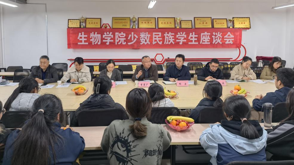 為落實(shí)“立德樹人”根本任務(wù),扎實(shí)做好少數(shù)民族學(xué)生管理服務(wù)工作,教育引導(dǎo)青年學(xué)子樹牢中華民族共同體意識,11月10日,生物學(xué)院黨委召開少數(shù)民族學(xué)生座談會。學(xué)工部部長李彥廣,統(tǒng)戰(zhàn)部副部長于曉明出席會議。生物學(xué)院全體學(xué)工人員和24名少數(shù)民族學(xué)生參加會議。會議由生物學(xué)院黨委書記楊力主持。