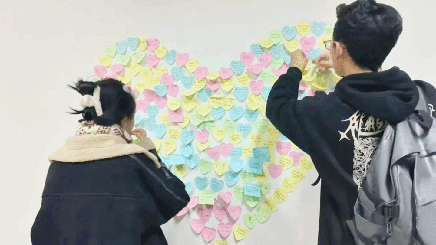 ——連心筑夢(mèng),舉辦“冬日有回音,研途有溫情”活動(dòng)。為切實(shí)發(fā)揮朋輩心理互助的積極作用,低年級(jí)學(xué)生自發(fā)用手寫信、明信片、卡片、愛心留言墻等方式傳遞對(duì)考研學(xué)子的真摯祝福,“念念不忘,必有回響,以夢(mèng)為馬,從容依舊,加油!”句句祝福為考研學(xué)子送上冬日里的溫情。