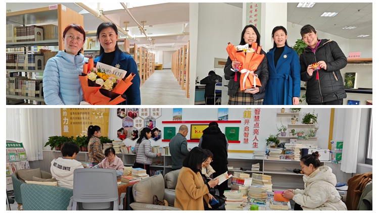 3月8日上午,圖書(shū)館副館長(zhǎng)郭莉走進(jìn)庫(kù)室一線(xiàn),為各位女館員送去節(jié)日的溫馨祝福。3月8日下午,圖書(shū)館11名館員走進(jìn)商州區(qū)東店子社區(qū)圖書(shū)室,開(kāi)展第二批文化志愿服務(wù)進(jìn)社區(qū)活動(dòng),共同度過(guò)一個(gè)書(shū)香四溢、有意義的節(jié)日。文化服務(wù)志愿活動(dòng)現(xiàn)場(chǎng)花香四溢,書(shū)香濃郁,各位館員分工明確,工作銜接順暢,高效地完成了近兩千冊(cè)圖書(shū)的加工上架。