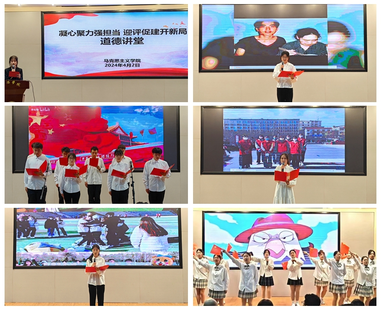為激發(fā)師生干事創(chuàng)業(yè)熱情,以昂揚(yáng)的精神風(fēng)貌迎接教育部審核評(píng)估,4月2日,馬克思主義學(xué)院在學(xué)校圖書(shū)館一樓報(bào)告廳舉辦了“凝心聚力強(qiáng)擔(dān)當(dāng),迎評(píng)促建開(kāi)新局”道德講堂。校黨委委員、宣傳部部長(zhǎng)王霄飛蒞臨指導(dǎo),馬克思主義學(xué)院黨政領(lǐng)導(dǎo)、全體教師及學(xué)生黨員、入黨積極分子、團(tuán)學(xué)干部參加了活動(dòng)。