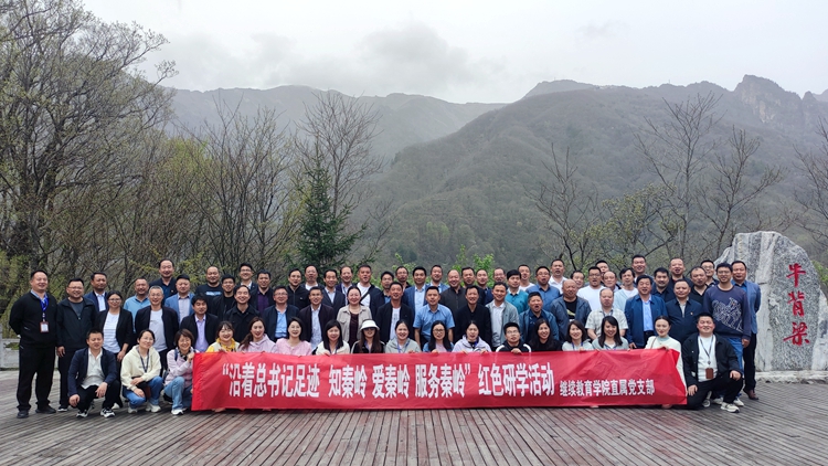 為鞏固拓展主題教育成果,重溫習(xí)近平總書記來陜考察重要講話重要指示精神,4月20日,繼續(xù)教育學(xué)院直屬黨支部組織全體黨員和我校承辦的商洛市第三期小學(xué)校長(zhǎng)任職資格培訓(xùn)學(xué)員,前往秦嶺牛背梁紅色教育基地和金米村現(xiàn)代農(nóng)業(yè)園區(qū),開展“沿著總書記足跡 知秦嶺 愛秦嶺 服務(wù)秦嶺”紅色研學(xué)活動(dòng)。
