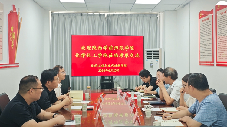 周春生詳細(xì)介紹了化材學(xué)院辦學(xué)條件、專業(yè)設(shè)置、科學(xué)研究、教育教學(xué)、人才培養(yǎng)等方面情況。李連慶介紹了陜西學(xué)前師范學(xué)院化學(xué)化工學(xué)院發(fā)展情況。雙方圍繞學(xué)科專業(yè)建設(shè)、人才培養(yǎng)、師資隊(duì)伍建設(shè)、實(shí)習(xí)基地建設(shè)和本科教學(xué)審核評(píng)估等展開了深入的交流。