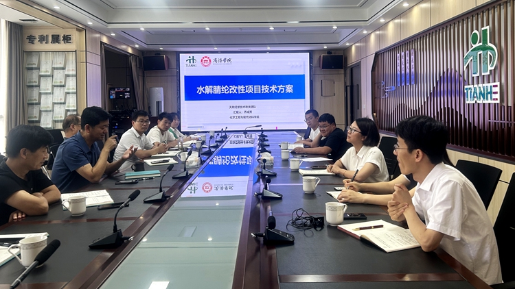 博士服務團隊成員龔偉副教授以“水解腈綸的前世今生”為主題,從腈綸的定義、腈綸的來源、腈綸的水解方式等方面為企業(yè)的生產(chǎn)技術團隊做了科普報告。喬成芳教授從聚丙烯腈水解產(chǎn)物分析檢測、水解聚丙烯腈銨鹽類產(chǎn)品工藝的優(yōu)化,水解聚丙烯腈的高質(zhì)利用等方面做了技術報告。