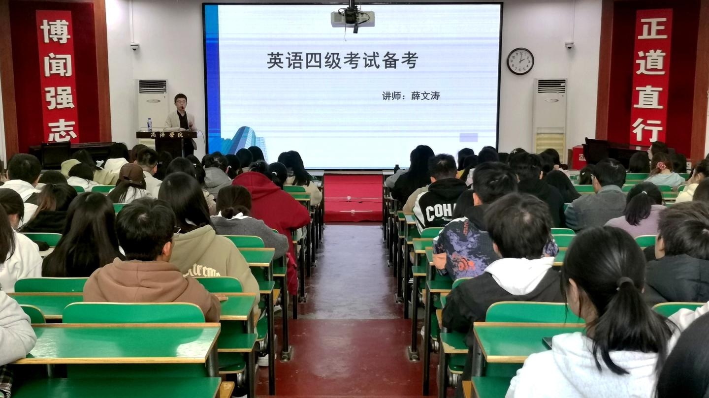 為幫助學(xué)生更好掌握大學(xué)英語(yǔ)四級(jí)考試策略與方法,提升學(xué)生英語(yǔ)水平,11月6日,圖書館邀請(qǐng)新東方教育科技集團(tuán)高級(jí)教研員薛文濤來(lái)我校開展“大學(xué)英語(yǔ)四級(jí)備考全攻略”專題講座。圖書館相關(guān)負(fù)責(zé)人及各二級(jí)學(xué)院學(xué)生代表共200余人參加講座。