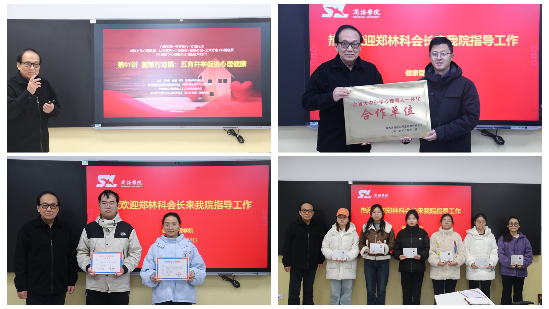 鄭林科代表研究會(huì)為學(xué)院頒發(fā)“全省大中小心理育人一體化合作單位”和“西安心理AI研究中心協(xié)作單位”牌匾,并為學(xué)院考取注冊(cè)心理師的學(xué)生代表頒發(fā)證書(shū),為在研究會(huì)組織開(kāi)展的研究項(xiàng)目中獲得立項(xiàng)的學(xué)生頒發(fā)立項(xiàng)證書(shū)。