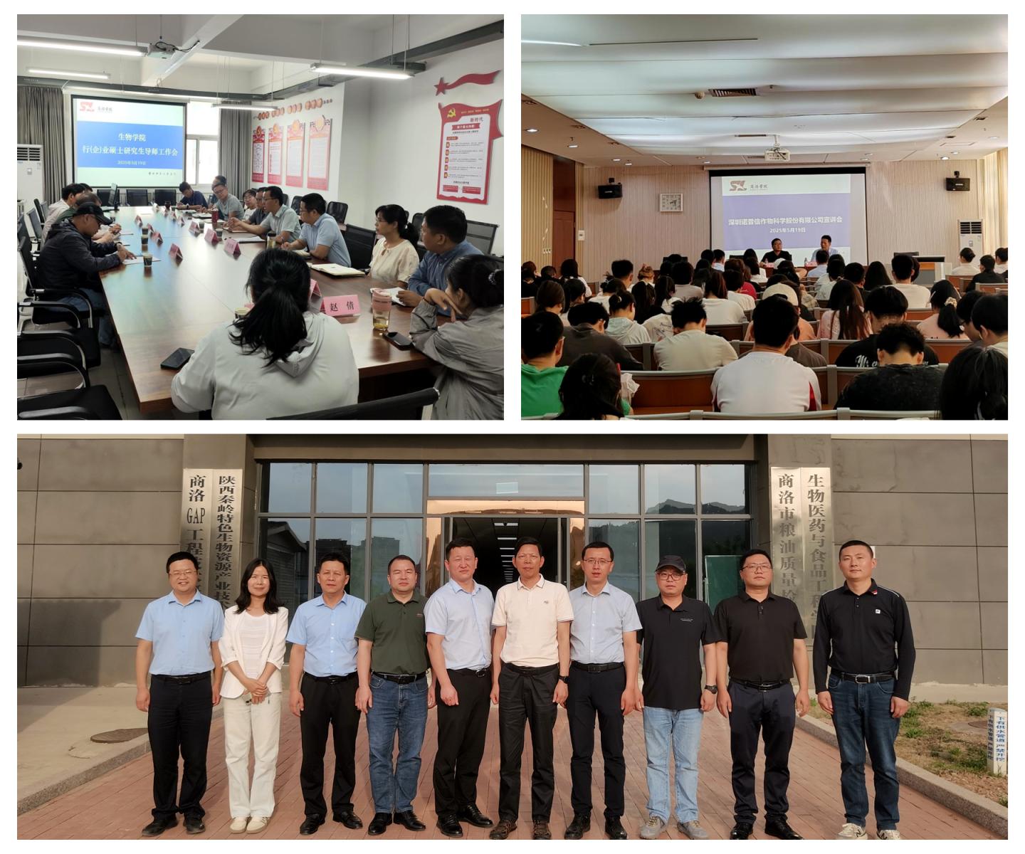 為助推生物與醫(yī)藥專業(yè)學(xué)位碩士點(diǎn)建設(shè),進(jìn)一步促進(jìn)校企深度融合,5月19日,深圳諾普信作物科學(xué)股份有限公司人力資源部程天驕部長、研究院曹明章博士、黃柯程博士、東莞市瑞德豐生物科技有限公司郭有根總經(jīng)理、陜西標(biāo)正作物科學(xué)有限公司李輝經(jīng)理等一行8人蒞臨生物學(xué)院就碩士點(diǎn)建設(shè)、科研合作、學(xué)生就業(yè)實(shí)習(xí)等事項(xiàng)進(jìn)行座談交流。學(xué)院領(lǐng)導(dǎo)班子和各系主任以及碩士生導(dǎo)師代表參加活動。