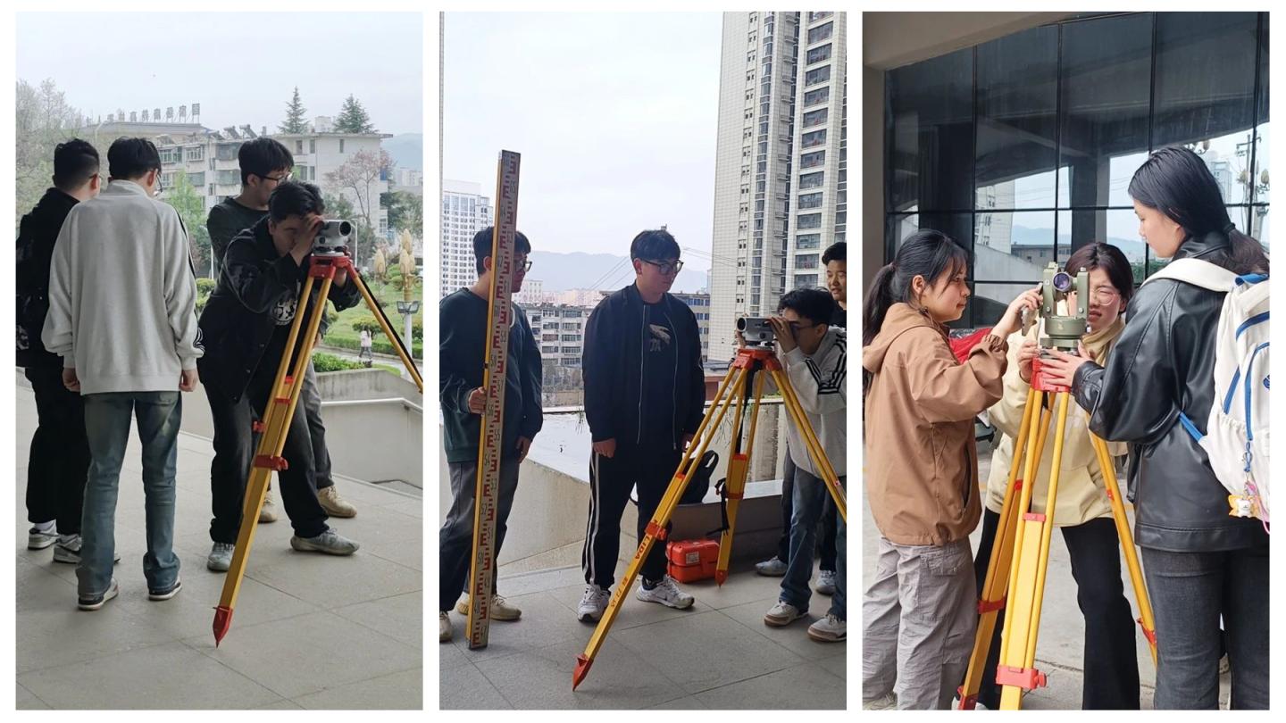 科技與匠心輝映,丈量空間維度。4月12日,在8號樓前的測繪現(xiàn)場,建工學子們手持精密的全站儀,仔細丈量著建筑的經(jīng)緯坐標。他們以數(shù)據(jù)為語言,精準詮釋著空間的邏輯,用科技的力量和精益求精的匠心精神,為建筑工程的精準實施奠定堅實基礎(chǔ)。