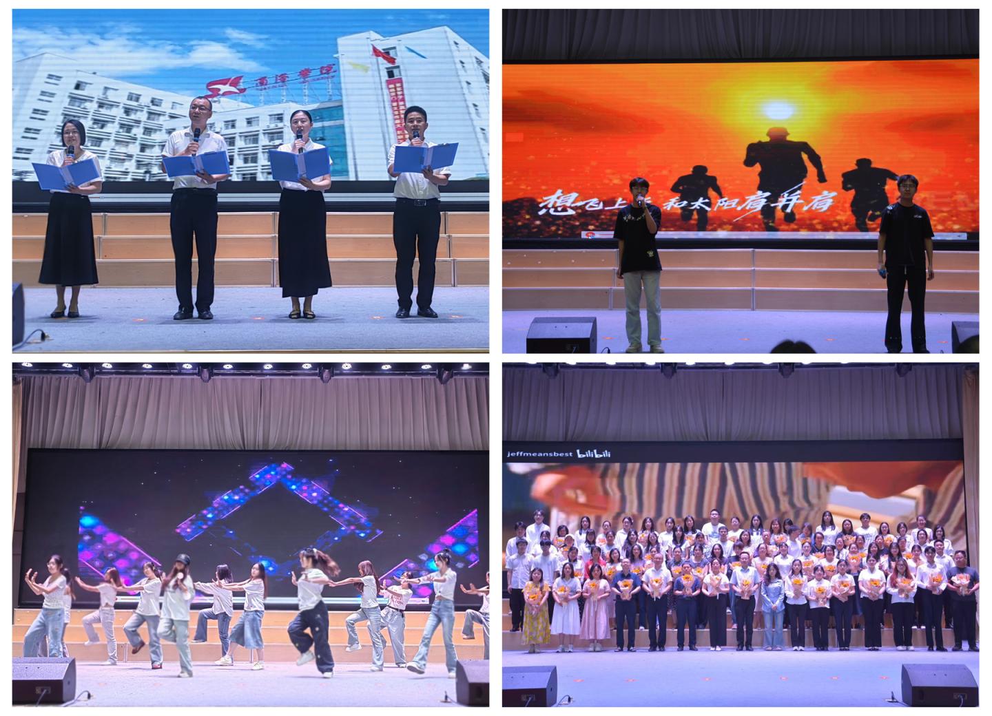 表彰大會上,王剛、趙萍君、劉玉婷、景宇四位老師通過朗誦詩歌《鶴城的風,吹過你們的夢》,表達對畢業(yè)生的依依不舍與深情祝福。在校同學帶來的歌曲《我相信》、舞蹈《愛出發(fā)》釋放了無限的青春活力,表達了對畢業(yè)學長學姐們的美好祝愿。受表彰的同學為全體教師獻上了鮮花,表達他們對母校和老師的祝福與感恩之情。