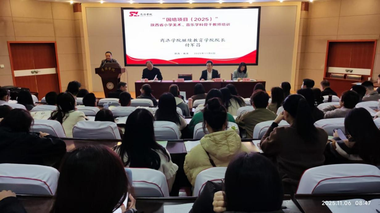 11 月 6 日 上午,由省教育廳主辦,我校繼續(xù)教育學(xué)院承辦的“國培項(xiàng)目(2025)” 陜西省農(nóng)村小學(xué)美術(shù)、音樂學(xué)科骨干教師培訓(xùn)班開班典禮在我校舉行。繼續(xù)教育學(xué)院付軍昌、藝術(shù)學(xué)院院長唐曌堃、藝術(shù)學(xué)院首席專家張婷及來自全省100余名骨干教師參加活動(dòng)。