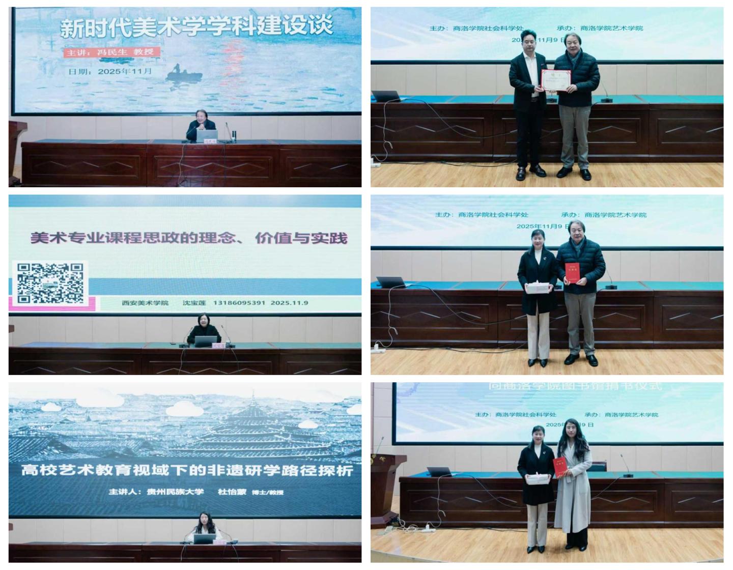 11月9日上午,陜西師范大學(xué)美術(shù)學(xué)院博士生導(dǎo)師馮民生教授、西安美術(shù)學(xué)院馬克思主義學(xué)院沈?qū)毶徑淌诤唾F州民族大學(xué)美術(shù)學(xué)院碩士生導(dǎo)師杜怡蒙教授應(yīng)邀為秦嶺學(xué)論壇作專題學(xué)術(shù)報(bào)告,圍繞秦嶺地域文化內(nèi)涵、秦嶺畫派創(chuàng)作研究、學(xué)科特色凝練、課程思政實(shí)施路徑以及非遺傳承創(chuàng)新等議題展開深入探討。藝術(shù)學(xué)院相關(guān)負(fù)責(zé)人、全體教師及美術(shù)學(xué)專業(yè)學(xué)生300余人現(xiàn)場(chǎng)聆聽了專家報(bào)告會(huì)。