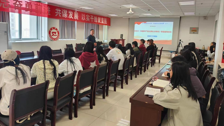 為進(jìn)一步規(guī)范組織生活,加強(qiáng)黨員和入黨積極分子黨性教育和黨紀(jì)黨規(guī)教育,推動(dòng)黨紀(jì)學(xué)習(xí)教育走深走實(shí),5月9日,經(jīng)濟(jì)管理學(xué)院黨委開(kāi)展“黨組織書(shū)記講黨紀(jì)學(xué)習(xí)教育主題黨課”活動(dòng)。院黨委書(shū)記高擴(kuò)昌以《新修訂<中國(guó)共產(chǎn)黨紀(jì)律處分條例》>》為題為經(jīng)濟(jì)管理學(xué)院學(xué)生黨支部黨員、預(yù)備黨員、入黨積極分子講授專題黨課。