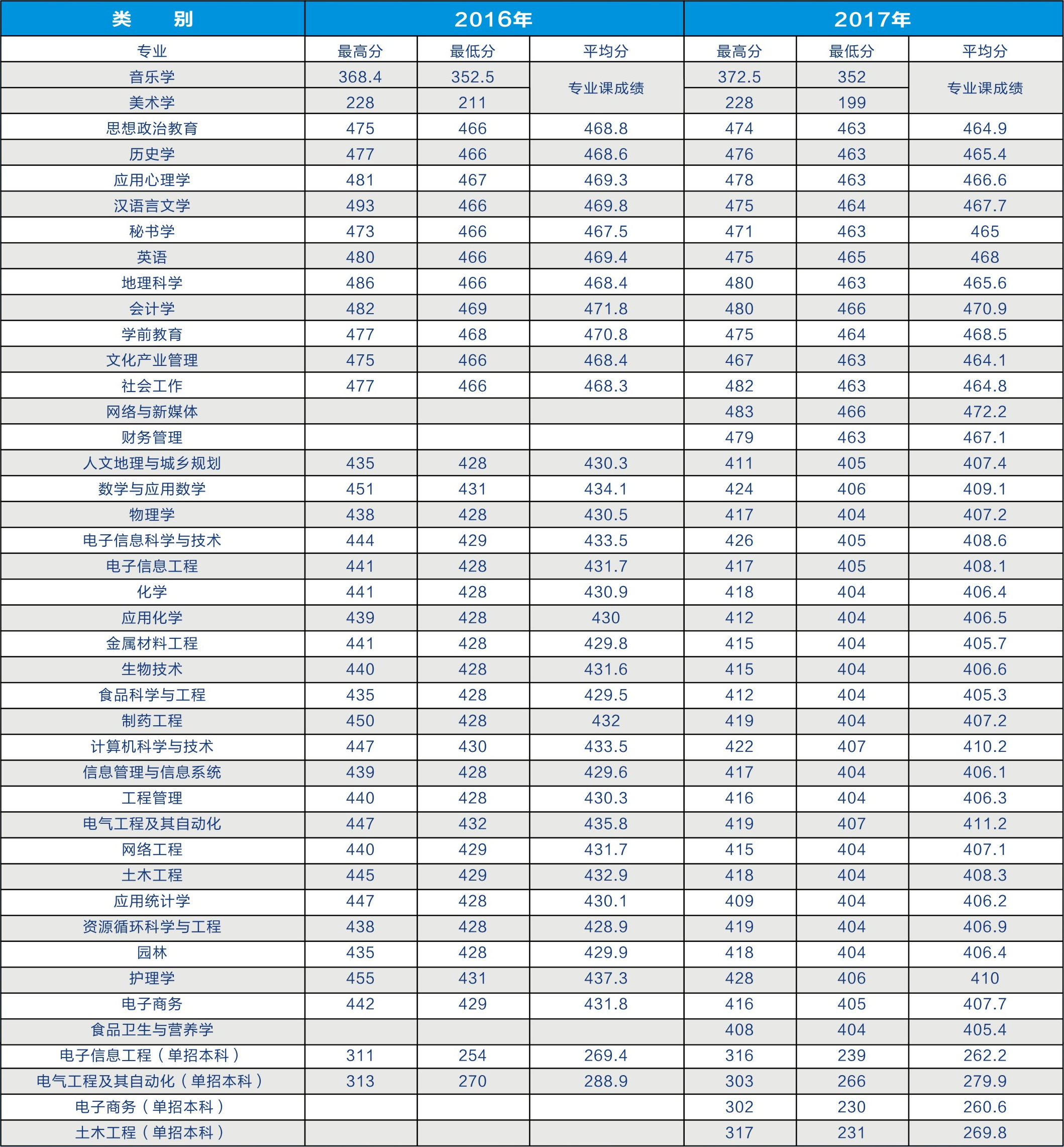 2016-2017年在陜各專業(yè)錄取分?jǐn)?shù)統(tǒng)計表