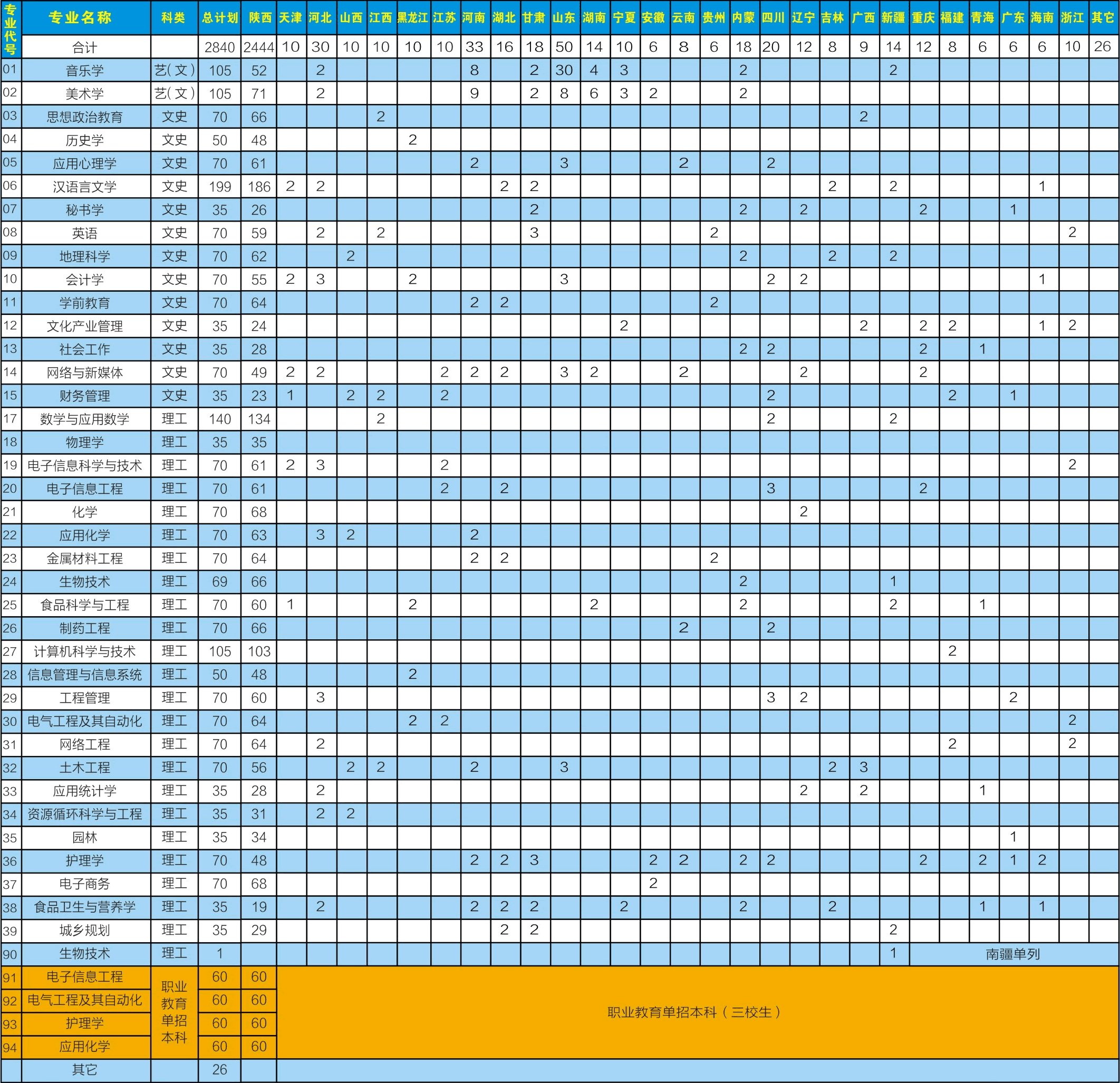 2018年商洛學(xué)院38個本科專業(yè)面向全國28個省(直轄市、自治區(qū))計劃錄取2840名優(yōu)秀學(xué)子。