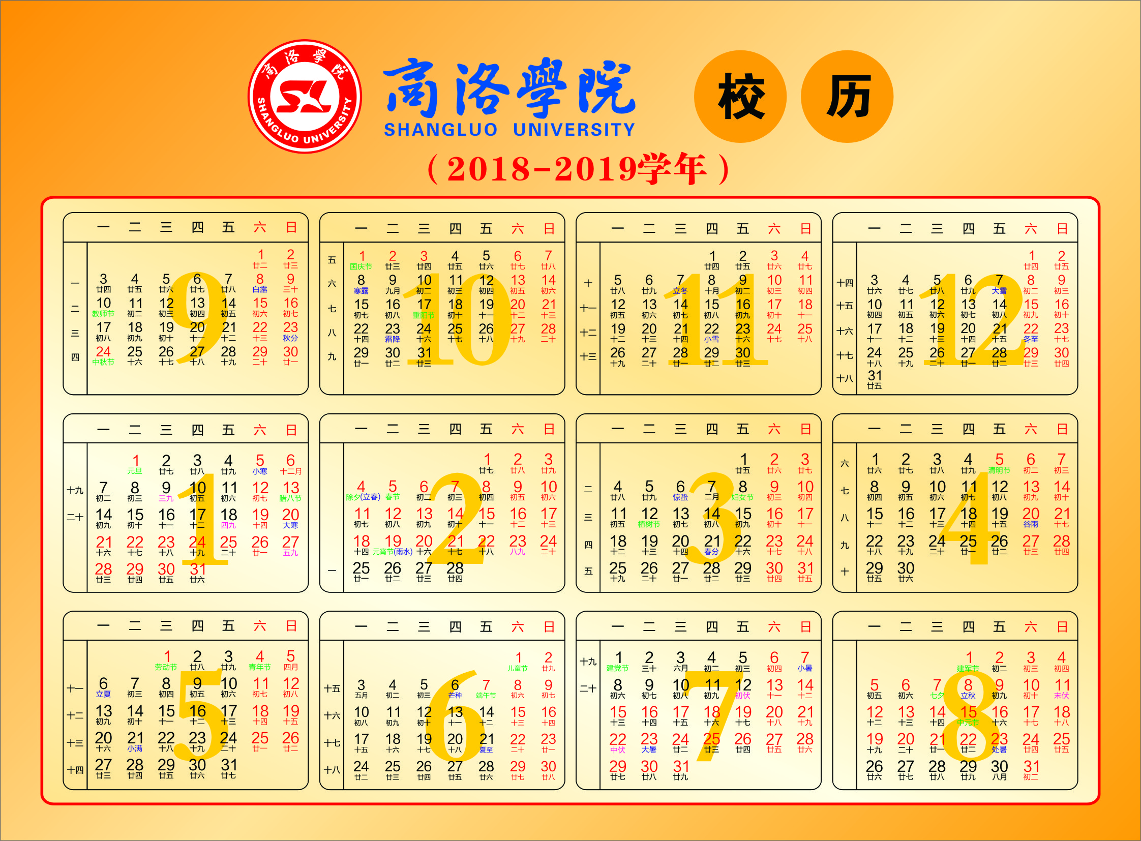 商洛學(xué)院校歷(2018—2019學(xué)年)