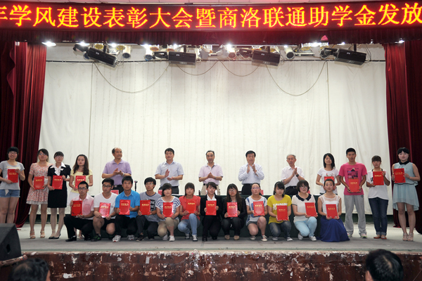 為了進(jìn)一步推進(jìn)學(xué)風(fēng)建設(shè)和學(xué)生自主創(chuàng)業(yè)工作,營(yíng)造良好的育人氛圍,5月22日下午,我校隆重召開(kāi)學(xué)風(fēng)建設(shè)表彰大會(huì),對(duì)2012年度國(guó)家獎(jiǎng)學(xué)金、國(guó)家勵(lì)志獎(jiǎng)學(xué)金獲獎(jiǎng)學(xué)生進(jìn)行表彰,對(duì)田亦柏等5名自主創(chuàng)業(yè)大學(xué)生進(jìn)行獎(jiǎng)勵(lì),對(duì)2012年學(xué)風(fēng)建設(shè)先進(jìn)集體進(jìn)行表彰,同時(shí)為程時(shí)妍等20名2013年商洛聯(lián)通助學(xué)金受助學(xué)生發(fā)放了助學(xué)金