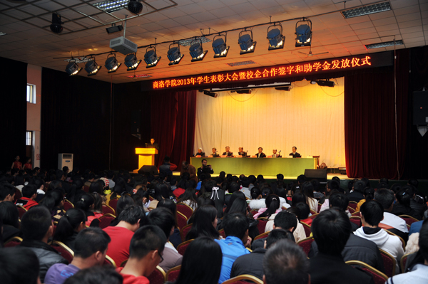 我校舉行2013年學(xué)生表彰大會(huì)暨校企合作簽字和助學(xué)金發(fā)放儀式