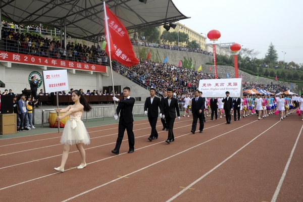 彩旗飄揚(yáng),鑼鼓鏗鏘,4月24日上午,我校2014年田徑運(yùn)動會隆重開幕。商洛市政府副市長劉榮賢,校領(lǐng)導(dǎo)張景書、劉建林、左曉民、魏書堂,商洛供電局局長李琦、中國聯(lián)通商洛分公司總經(jīng)理古濤、中國電信商洛分公司副總經(jīng)理胡萬社、中國移動商洛分公司副總經(jīng)理楊林濤出席了開幕式。校內(nèi)各單位負(fù)責(zé)人,各學(xué)院及教職工組成的10支代表隊參加了開幕式。開幕式由副校長魏書堂主持,校黨委書記左曉民致開幕詞
