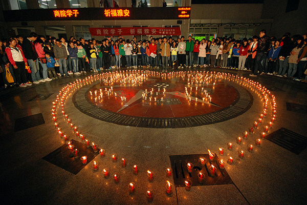 近日,由陜西省委高教工委、陜西大學(xué)生在線主辦的2013“中國夢?校園情”大學(xué)生原創(chuàng)攝影、微電影大賽公布了評選結(jié)果。我校宣傳部王霄飛指導(dǎo)、語言文化傳播學(xué)院漢語言文學(xué)專業(yè)2011級學(xué)生張隆康拍攝的作品《祈福雅安》榮獲一等獎,這也是我校學(xué)生在省級攝影大賽中首次獲此殊榮