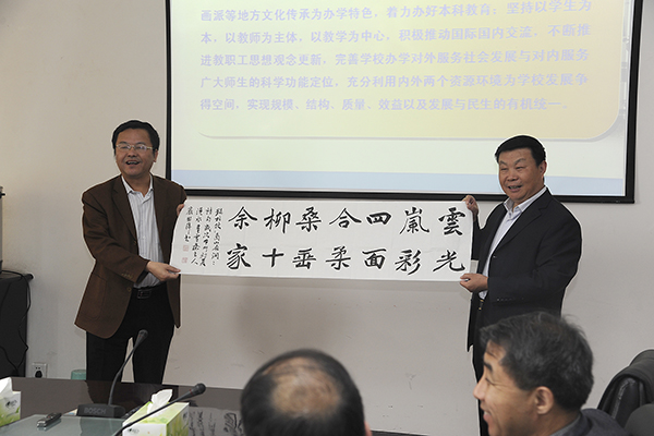5月16日,陜西理工學(xué)院院長何寧教授來我校訪問交流。訪問期間,何寧一行與校黨委書記張景書、校長劉建林及相關(guān)部門負(fù)責(zé)人進行了座談,并為我校教師作了專業(yè)綜合改革報告