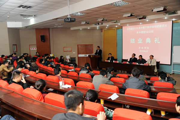 3月26日,我校承辦的陜西省2012年高中骨干教師省級研修項(xiàng)目高中物理培訓(xùn)班舉辦了結(jié)業(yè)典禮。至此,我校承辦的陜西省2012年“國培計(jì)劃”和省級 培訓(xùn)項(xiàng)目圓滿結(jié)束,650名參訓(xùn)學(xué)員全部順利結(jié)業(yè)。為了表達(dá)對母校的感恩之心,全體學(xué)員自發(fā)捐資向?qū)W院贈送一方景觀石,以作留念。校黨委副書記 左曉民,紀(jì)委書記、學(xué)院“國培計(jì)劃”和省級培訓(xùn)項(xiàng)目領(lǐng)導(dǎo)小組副組長王思懷出席了景觀石揭幕儀式,王思懷和培訓(xùn)學(xué)員代表一同為景觀石揭幕。