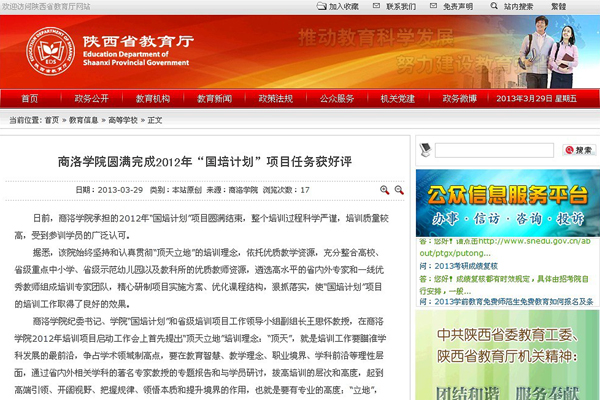 近日,陜西省教育廳官網(wǎng)、陜西省農(nóng)村教師骨干培訓(xùn)網(wǎng)、陜西省中小學(xué)教師培訓(xùn)網(wǎng)等多家網(wǎng)站對我校2012年度“國培計(jì)劃”和省級培訓(xùn)項(xiàng)目先進(jìn)經(jīng)驗(yàn)進(jìn)行了報(bào)道。文中稱,我校2012年“國培計(jì)劃”和省級培訓(xùn)計(jì)劃項(xiàng)目培訓(xùn)過程科學(xué)嚴(yán)謹(jǐn)、培訓(xùn)質(zhì)量較高,受到參訓(xùn)學(xué)員的廣泛認(rèn)可
